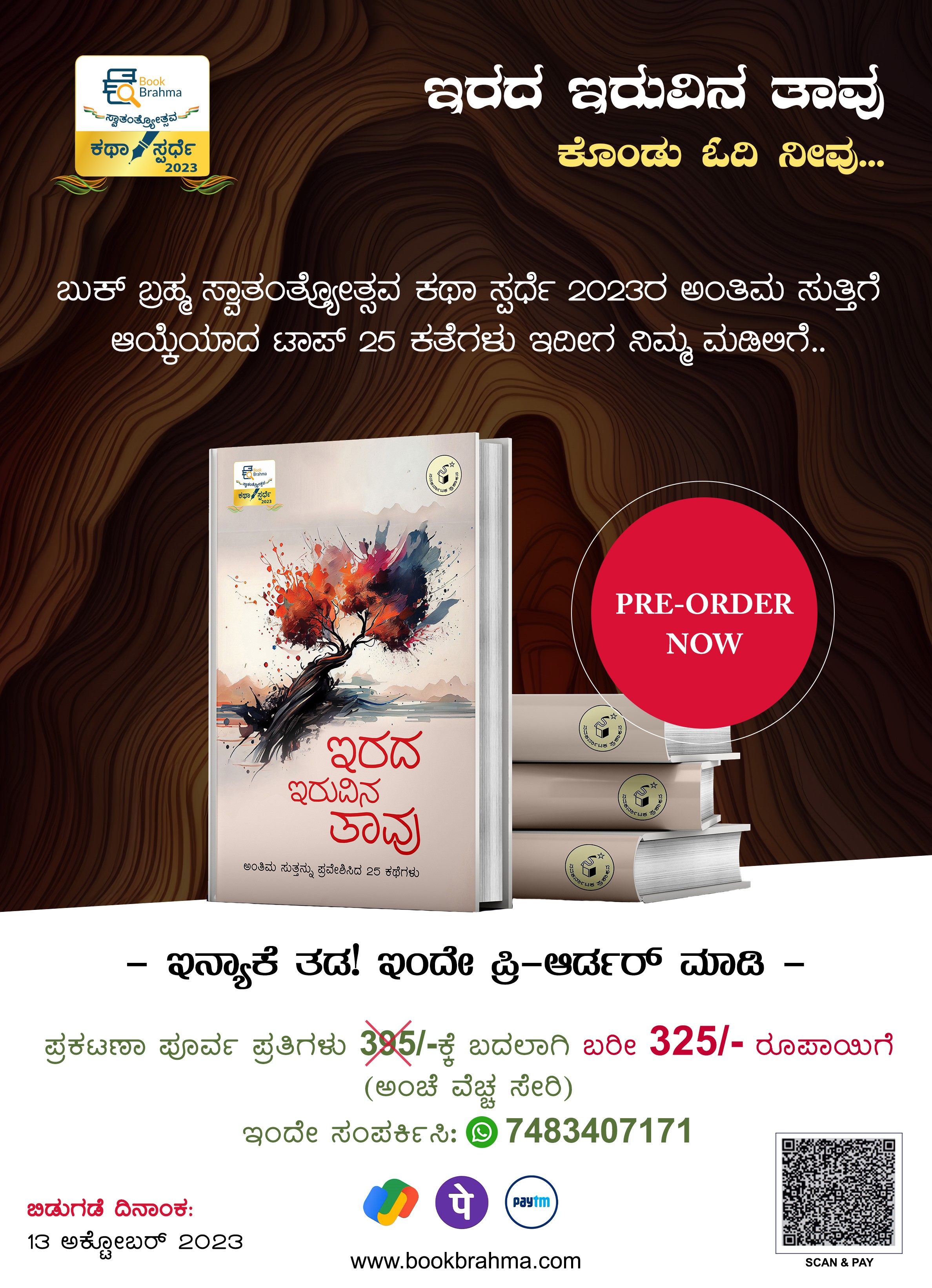 ರೂ.395 ಮುಖಬೆಲೆಯ ಈ ಪುಸ್ತಕ ಬಿಡುಗಡೆಗು ಮುನ್ನವೇ ರಿಯಾಯತಿ ದರದಲ್ಲಿ ನಿಮ್ಮ ಕೈ ಸೇರಲಿದೆ. ಅಂಚೆವೆಚ್ಚ ಸೇರಿ ಕೇಲವ 325 ರೂಪಾಯಿಗಳಿಗೆ 'ಇರದ ಇರುವಿನ ತಾವು' ನಿಮ್ಮ ಕೈಸೇರಲಿದೆ. ಸಾಹಿತ್ಯಾಸಕ್ತರು ಇದೇ ಸಂಪರ್ಕಿಸಿ- 7483407171