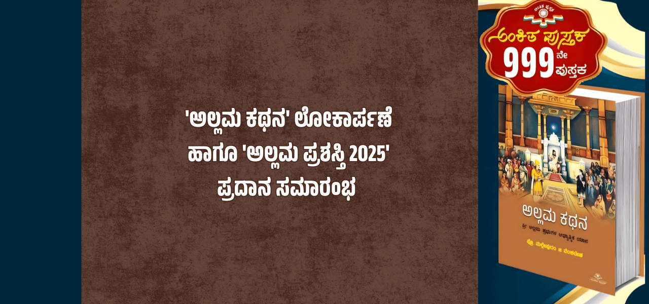 ಬೆಂಗಳೂರು : ಶ್ರೀ ಪ್ರಭುಲಿಂಗೇಶ್ವರ ಶಿಕ್ಷಣ ಸಂಸ್ಥೆ (ರಿ.) ಜಮಖಂಡಿ ಸಹಯೋಗದೊಂದಿಗೆ ಅಂಕಿತ ಪುಸ್ತಕ, ಬೆಂಗಳೂರು ಪ್ರಕಟಿಸಲಿರುವ 999ನೇ ಪುಸ್ತಕ , ಪ್ರೊ. ಮಲ್ಲೇಪುರಂ ಜಿ. ವೆಂಕಟೇಶ ವಿರಚಿತ 'ಅಲ್ಲಮ ಕಥನ' ಕೃತಿಯ ಲೋಕಾರ್ಪಣೆ ಮತ್ತು 'ಅಲ್ಲಮ ಪ್ರಶಸ್ತಿ 2025'ರ ಪ್ರದಾನ ಸಮಾರಂಭವನ್ನು ಇದೇ ನವೆಂಬರ್ 30, 2025, ಭಾನುವಾರ, ಬೆಳಿಗ್ಗೆ 11 ಗಂಟೆಗೆ ಬೆಂಗಳೂರಿನ ಕುಮಾರಪಾರ್ಕ್ ಪೂರ್ವದಲ್ಲಿರುವ ಗಾಂಧಿ ಭವನದ ಮಹಾಂತದೇವರ ದೇಸಾಯಿ ಸಭಾಂಗಣದಲ್ಲಿ ಆಯೋಜಿಸಲಾಗಿದೆ.