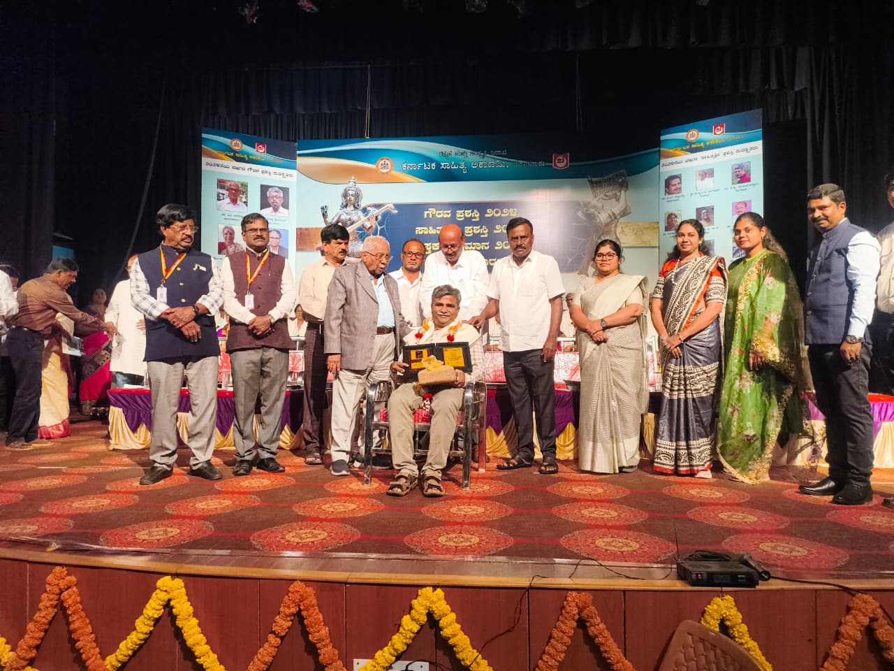 ಬೆಂಗಳೂರು: ಕನ್ನಡ ಮತ್ತು ಸಂಸ್ಕೃತಿ ಇಲಾಖೆ, ಕರ್ನಾಟಕ ಸಾಹಿತ್ಯ ಅಕಾಡೆಮಿ ವತಿಯಿಂದ ʻಗೌರವ ಪ್ರಶಸ್ತಿ 2024', ʻಸಾಹಿತ್ಯಶ್ರೀ ಪ್ರಶಸ್ತಿ 2024ʼ, `ಪುಸ್ತಕ ಬಹುಮಾನ 2023' ಹಾಗೂ ಪ್ರಶಸ್ತಿ ಪ್ರದಾನ ಸಮಾರಂಭವು 2025 ಡಿ. 05 ಶುಕ್ರವಾರದಂದು ತುಮಕೂರಿನ ಡಾ. ಗುಬ್ಬಿ ವೀರಣ್ಣ ರಂಗಮಂದಿರದಲ್ಲಿ ನಡೆಯಿತು.